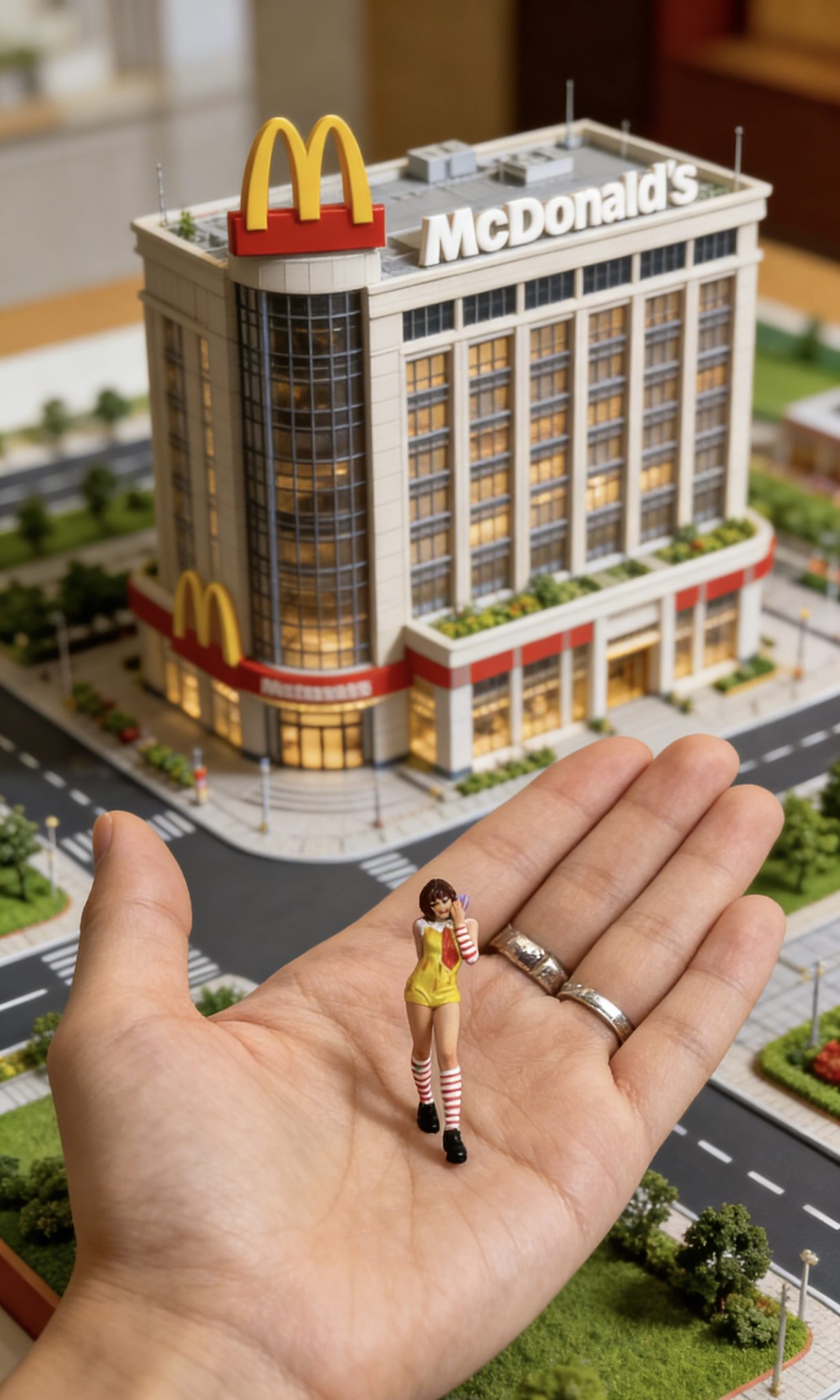 側重可愛與趣味性,但無法精確還原建築物尺度或真實職人的專業身姿,缺乏寫實紀念價值。