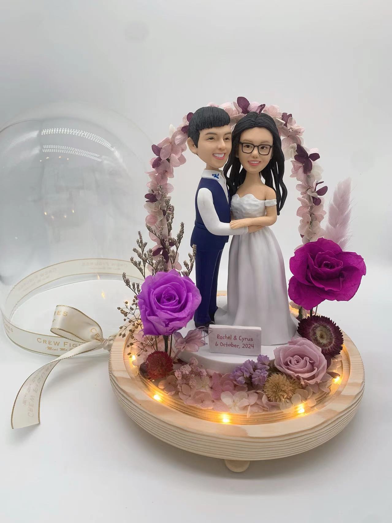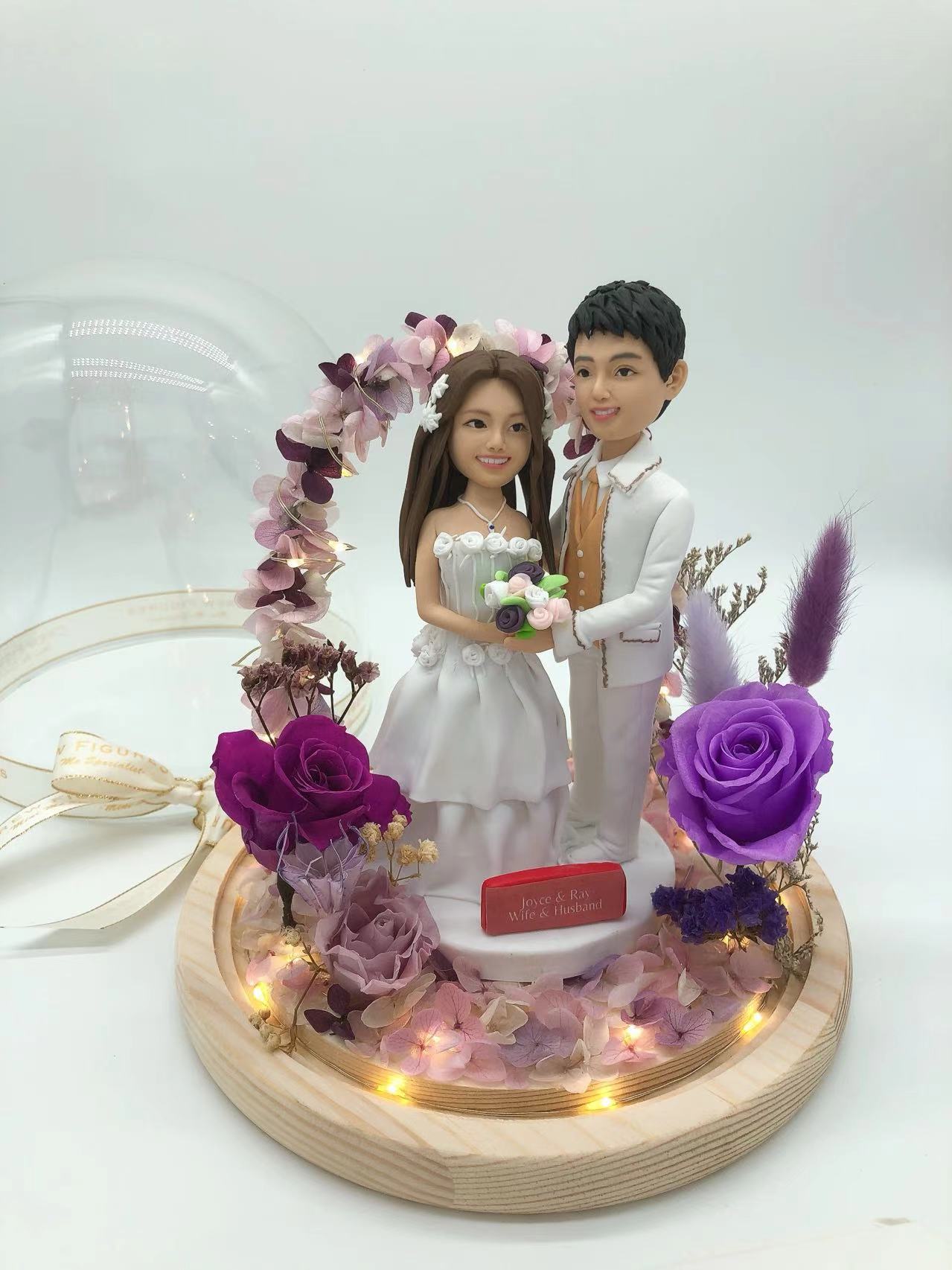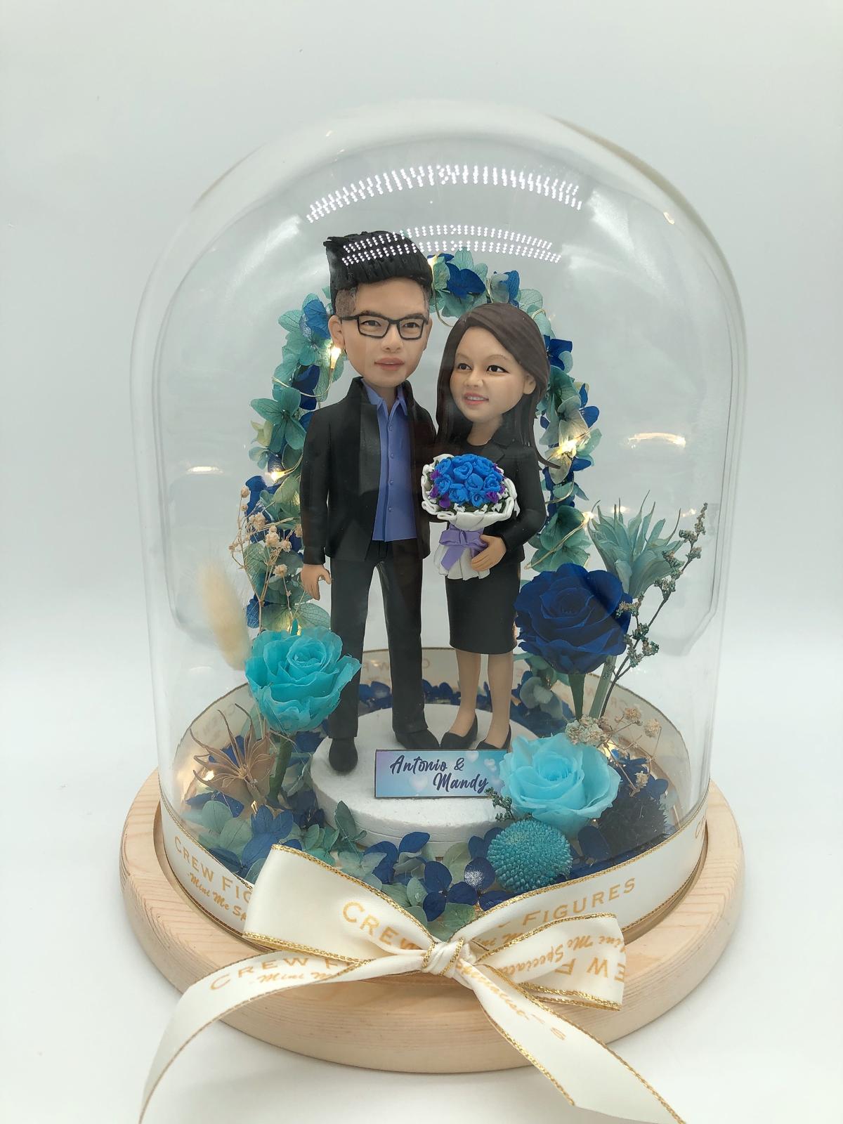 真人公仔雙人永生花樽 Flower Dome
