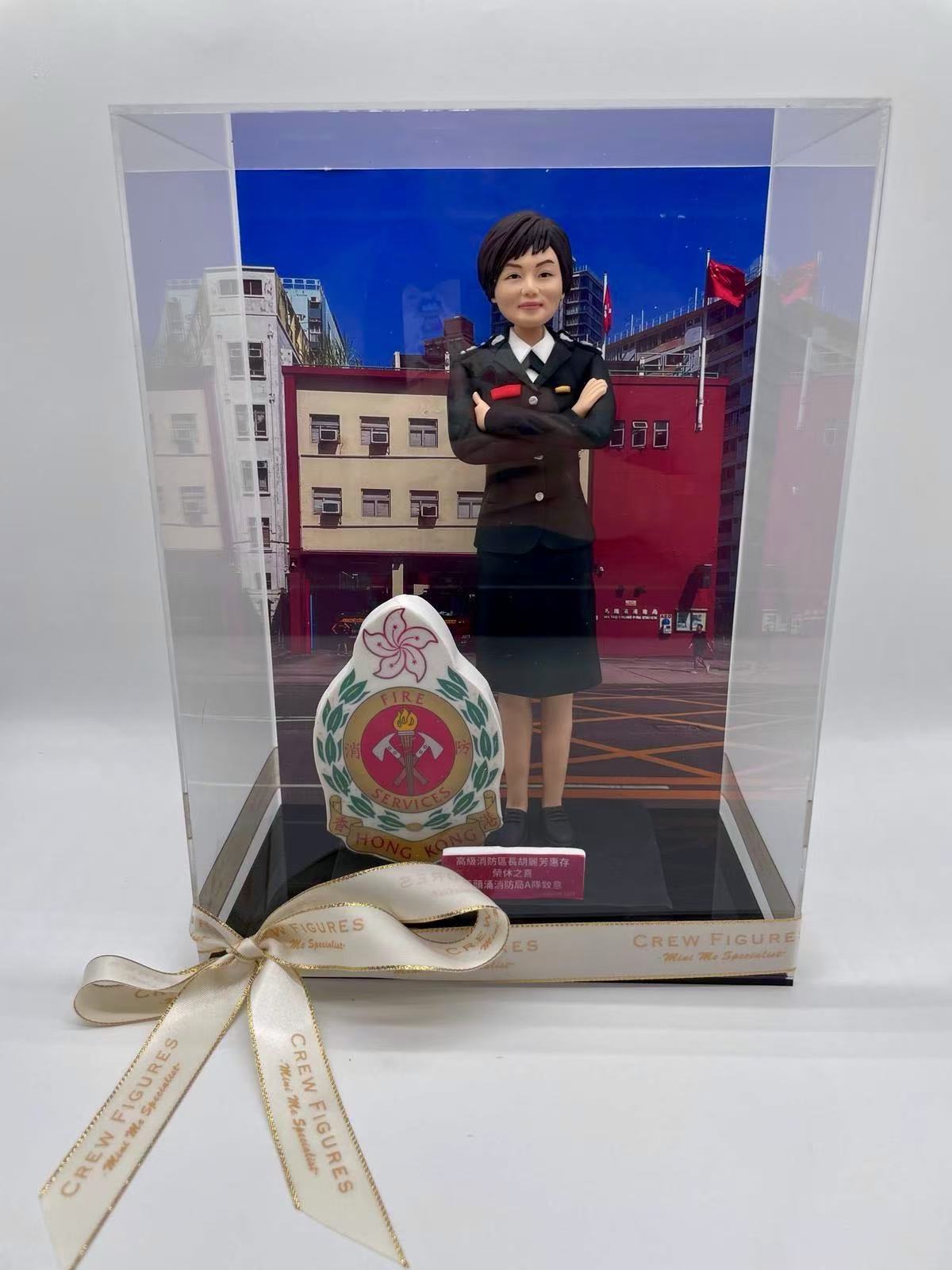 消防榮休禮物,以人形公仔及公司Logo融合亞加力膠盒的職場禮物,適合用於老闆禮物、上司離職禮物、同事禮物,升職禮物的場合。代表昔日舊戰友默默伴隨左右,無論主角走到天涯海角,永遠不要忘記共事回憶。